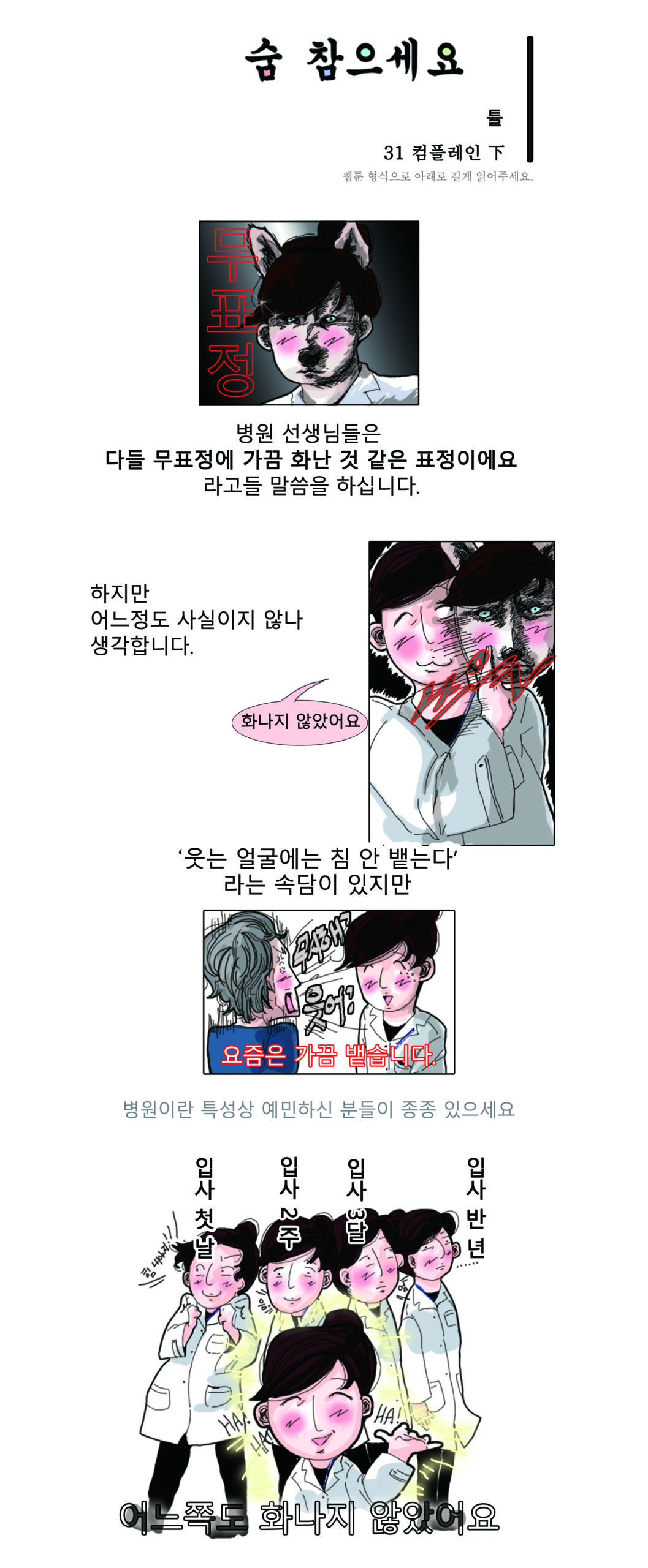 2024년 12월 15일 @‘숨 참으세요’ 는 네이버 도전만화와 애니원툰에서 연재되었던 웹툰입니다.네이버 http://comic.naver.com/challenge/list.nhn?titleId=690698애니원툰 http://anyonetoon.com/AocWebtoon.aoc?webtoon_num=57&