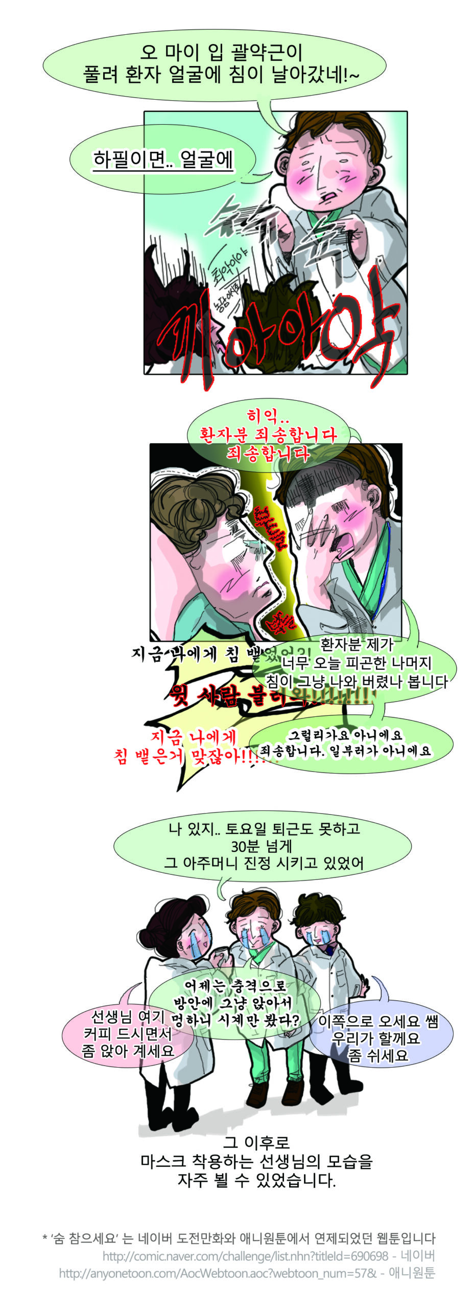 2022년 11월 08일 @‘숨 참으세요’ 는 네이버 도전만화와 애니원툰에서 연재되었던 웹툰입니다. 네이버 http://comic.naver.com/challenge/list.nhn?titleId=690698 애니원툰 http://anyonetoon.com/AocWebtoon.aoc?webtoon_num=57&
