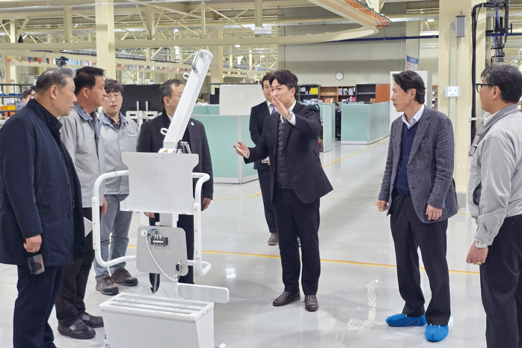 제품 생산 구역을 둘러본 뒤 현재 판매 중인 장비를 체험해 볼 수 있는 체험관으로 이동했다. 체험관에는 모든 검사 포지션을 입력하면 자동으로 장비가 움직이는 A PR (Anatomical Programmed Radiography) 장비와 이동형 X-ray 촬영 장비가 전시되어 있었다. APR 장비는 DRGEM에서 직접 연구하고 개발한 기술로 만들어진 장비로, 최근 트렌드에 맞는 디자인과 사용자 편의성을 고려해 제작했다고 한다. 바로 옆에는 이전 모델이 함께 전시되어 있었는데 디자인과 기능면에서 확실한 차이를 보여주었다. 실제 작동 모습을 시연해 주었는데 X-ray 튜브 이동이 매우 안정적이었다. 이어서 이동형 장비도 시연을 통해 확인했는데 외산 장비 못지않은 안정적인 조작감을 보여주었다. 특히 이번에 새롭게 출시되는 RAYMO는 체험 공간에는 전시되어 있지 않았으나, 가장 작은 본체 사이즈로 타 제품과의 차별점이 있으며, 안전 및 사용자 편의성을 강화하기 위해 많은 개발 노력이 투입되었다고 설명했다.