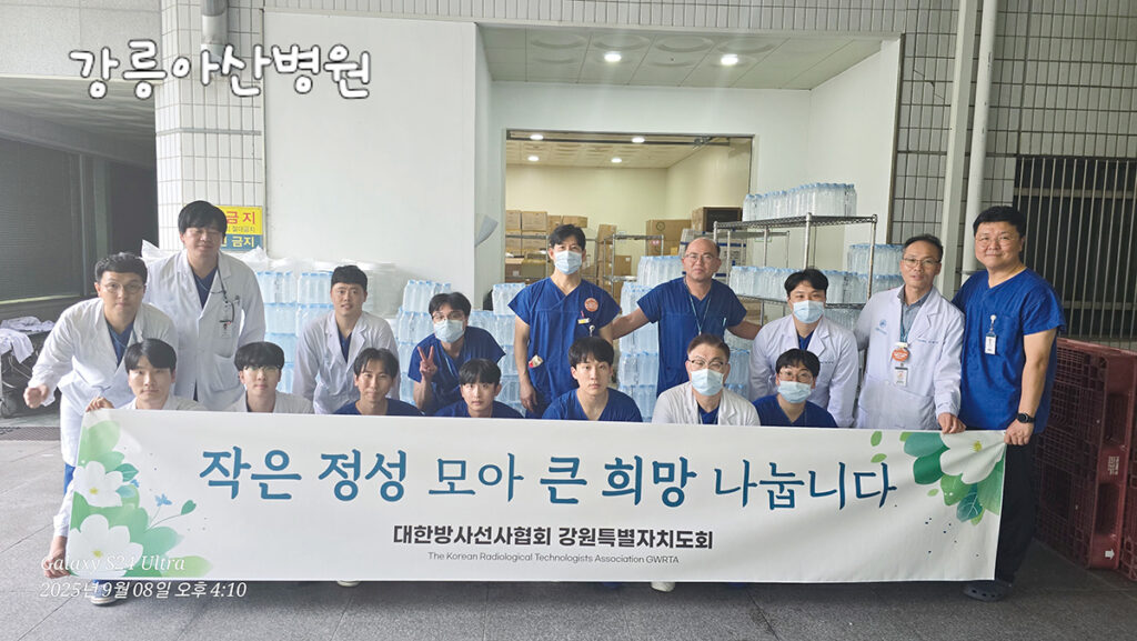 대한방사선사협회 강원특별자치도회(회장 이홍규)는 2025년 9월, 강릉 지역의 극심한 가뭄으로 인한 식수난 상황에서 회원들의 어려움을 덜기 위해 생수 지원 사업을 긴급히 시행했다.